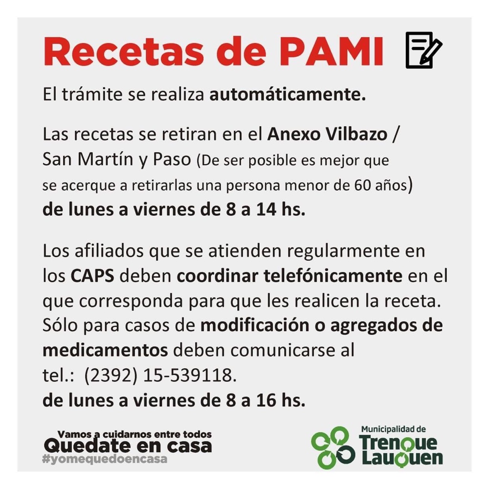 El trámite de recetas de PAMI en Trenque Lauquen, se realiza automáticamente.