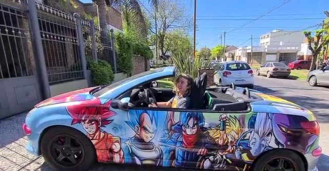 Javier Barragán tiene 23 años, es del barrio de La Loma y en las últimas semanas sorprendió en la Ciudad cuando su automóvil empezó a lucir en la calle con un ploteo muy particular: personajes de Dragon Ball en el 100% de la carrocería.