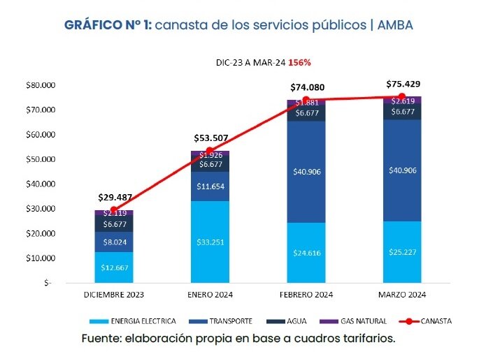 El Instituto Interdisciplinario de Economía Política (IIEP) de la Universidad de Buenos Aires (UBA) y el Conicet han revelado que el costo promedio de la canasta de servicios públicos para las familias del Área Metropolitana de Buenos Aires (AMBA) ha experimentado un vertiginoso ascenso entre diciembre y marzo, pasando de 29.487 a 75.429 pesos, lo que representa un aumento del 156%. Este incremento ha impactado significativamente en el presupuesto de los hogares, que han visto cómo el porcentaje de sus ingresos destinados al pago de servicios esenciales ha aumentado del 6% al 11% en el mismo período.